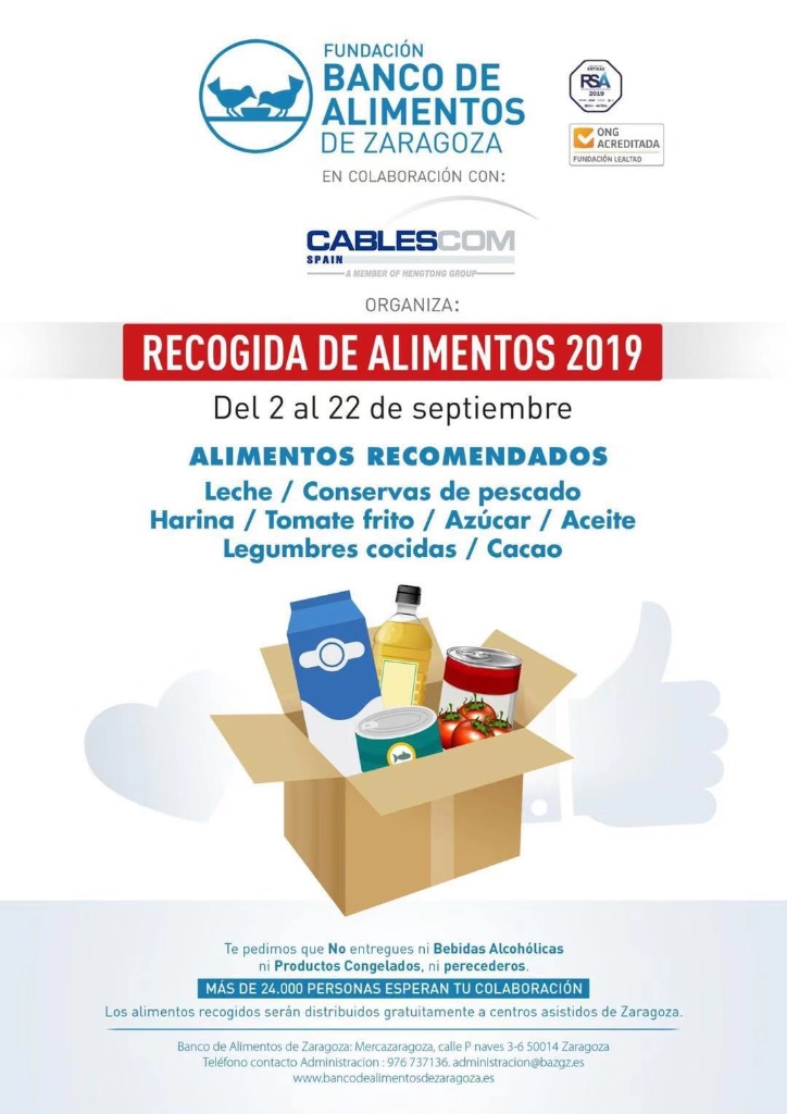 From September 2 to 22, HENGTONG CABLESCOM had a food collection activity in collaboration with the Zaragoza Food Bank, The Cablescom employees have the the opportunity to collaborate. The collected food will be distributed freely among some Care Homes in Zaragoza.