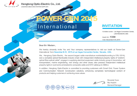 Hengtong was invited to POWER-GEN International on December 8th 2015, and the exhibition will end at December 10th. Hengtong Optic-Electric is committed to providing customers with Smart Grid, Power System and Communication Network Construction solutions, enhancing completely technological content of products and helping customers in achieving more values.